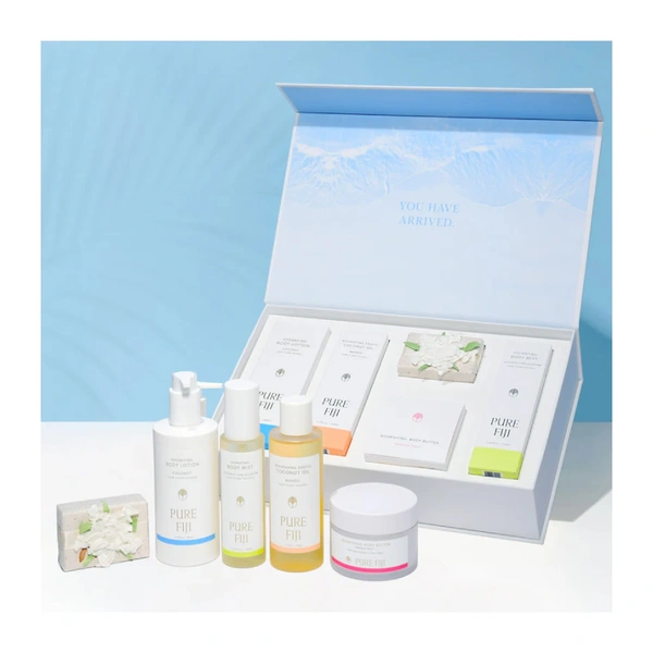 Allow your guest's to indulge in the ultimate tropical escape with Pure Fiji's Paradise Gift Set, a luxurious collection of island-inspired skincare essentials. Pamper your guest's skin with Pure Fiji's Hydrating Body Lotion (300ml) in Coconut for all-day moisture, and nourish deeply with the exotic richness of the Exotic Oil (230ml)in Mango. Refresh and hydrate with the tropical aroma of Body Mist (150ml) in Coconut Lime Blossom, while the decadent Body Butter (200ml) in Dragon Fruit offers intense hydration and softness. Complete their paradise experience with a Luxury Soap (110g)in Noni, crafted to cleanse and nourish. This set brings a touch of island luxury to your guest's daily routine.